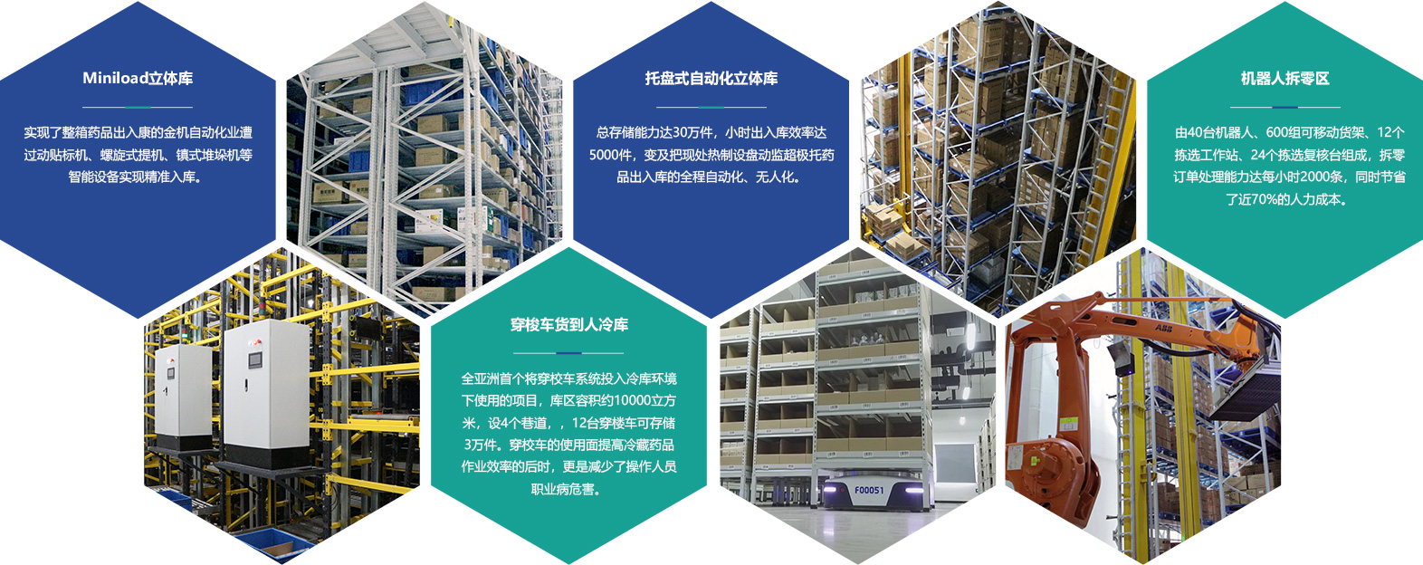 总存储能力达30万件,小时出入库效率达5000件,变及把现处热制设盘动监超极托药品出入库的全程自动化、无人化。